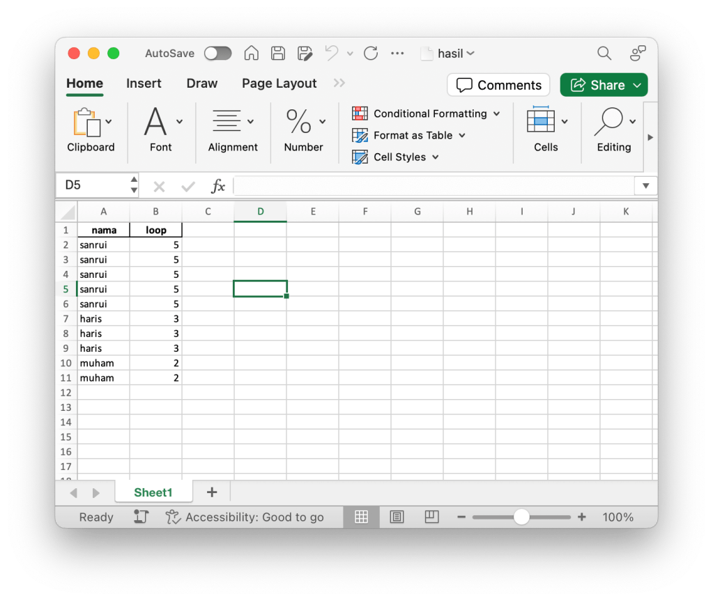 β Menghasilkan file Excel baru dengan baris yang diulang sesuai nilai di kolom tersebut